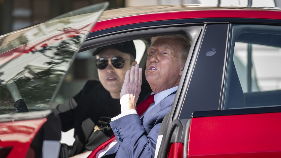 Washington, DC - March 11 : President Donald J Trump and Tesla CEO Elon Musk get into a model S while looking at various models of Teslas on the South Lawn at the White House on Tuesday, March 11, 2025 in Washington, DC. (Photo by Jabin Botsford/The Washington Post via Getty Images)Elon Musk zmienia priorytety. Wybrał Teslę zamiast Trumpa