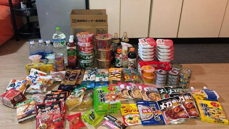 Japońska paczka pomocy dla osób na kwarantannie robi wrażenie. W jej skład wchodzą zarówno makarony, jak i konserwy, zupki błyskawiczne, czy butelki z wodą mineralną. Oprócz produktów podstawowej potrzeby w kartonie można znaleźć też słodycze.