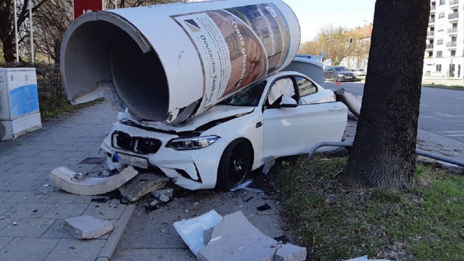 Nietypowy wypadek w Monachium. W Niedzielę Wielkanocną kierowca luksusowego BMW M2 stracił panowanie nad autem i z impetem uderzył w słup reklamowy. Zdaniem świadków 23-latek brał udział w wyścigu ulicznym.