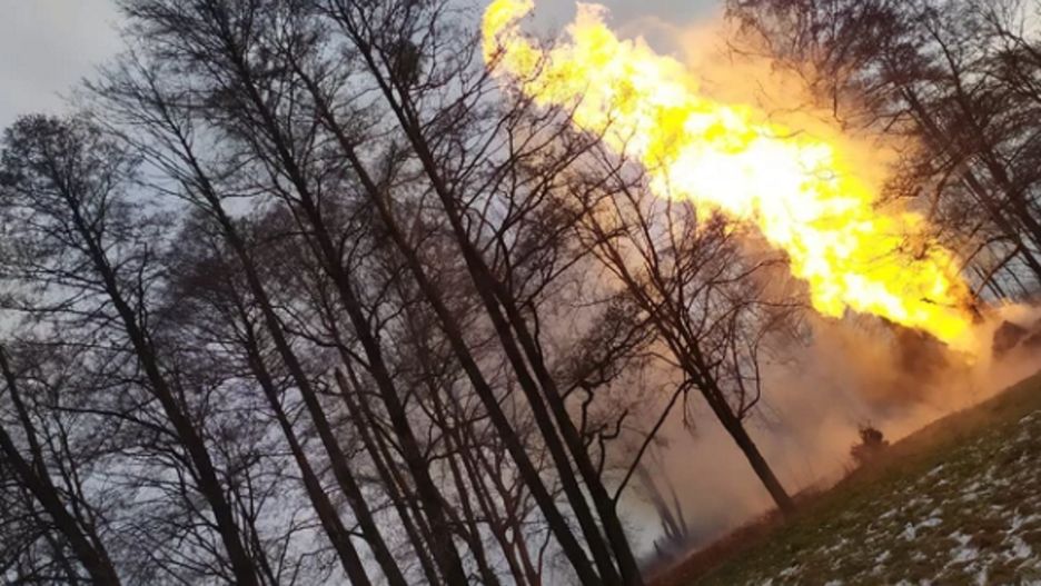 W mediach społecznościowych pojawiły się nagrania wideo, na których widać ogromny słup ognia wydobywającego się z uszkodzonego gazociągu.