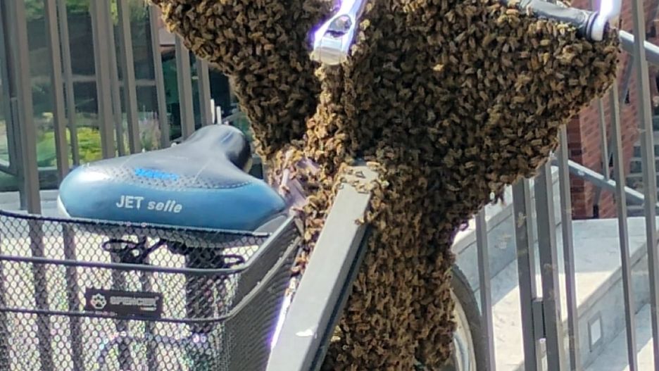 Do niecodziennej sytuacji doszło na jednym z gdańskich parkingów dla rowerów. Jeden ze stojących tam jednośladów upodobał sobie rój pszczół. Choć owady nie były agresywne, strażniczki "Animal Patrolu" zabezpieczały teren, żeby mieć pewność, że nikomu nic się nie stanie. Pszczoły ani myślały opuścić to miejsce.