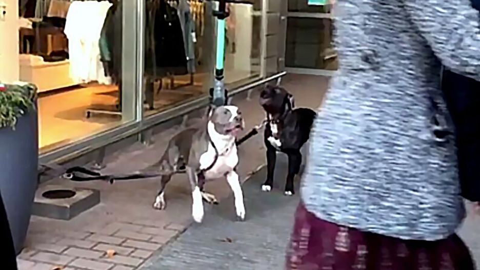 Psy bojowe uwiązane pod centrum handlowym. Atakowały przechodniów