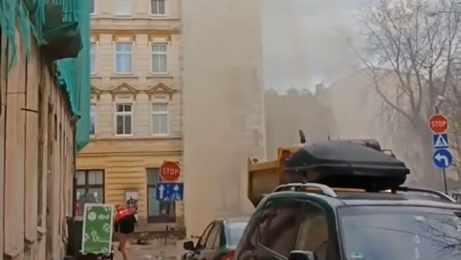 Kolejny problem pojawił się we wtorek (7 października). Z uszkodzonego wodociągu woda pod ogromnym ciśnieniem tryskała na wysokość czwartego piętra okolicznych kamienic.