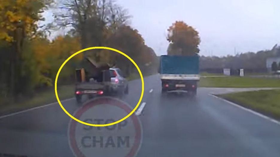 W leżący na szosie mebel wjechał najpierw samochód osobowy, a później jadące z tyłu auto dostawcze. Obydwa pojazdy zostały uszkodzone podczas zdarzenia. Nagranie z całej sytuacji zostało umieszczone na kanale STOP CHAM.