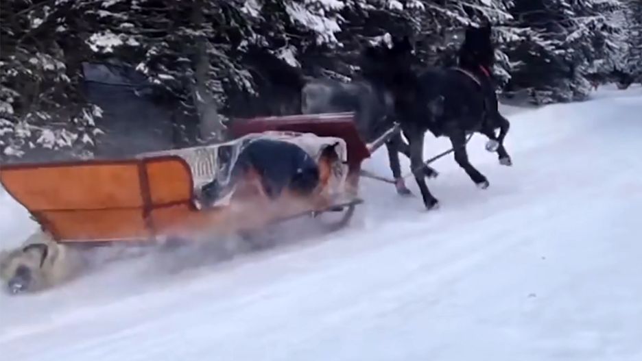 Na filmie widać dwa konie z przypiętymi saniami. Zwierzęta biegną bardzo szybko i nie zwracają uwagi na ludzi. Turyści musieli ratować się ucieczką w zaspy. Na szczęście w incydencie nikt nie ucierpiał.