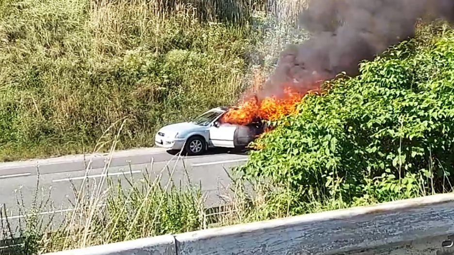 Nagraniem przedstawiającym buchające z auta płomienie podzielił się z nami czytelnik. Pojazd doszczętnie spłonął. Miejsce zdarzenia zostało zabezpieczone przez służby.