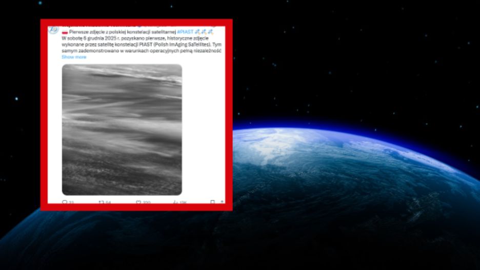 W sobotę 6 grudnia 2025 r. pozyskano pierwsze, historyczne zdjęcie wykonane przez satelitę konstelacji PIAST (Polish ImAging SaTellites). Tym samym zademonstrowano w warunkach operacyjnych pełną niezależność polskiego łańcucha technologicznego - podkreśliła w niedzielę wieczorem Wojskowa Akademia Techniczna w komunikacie opublikowanym na portalu X.