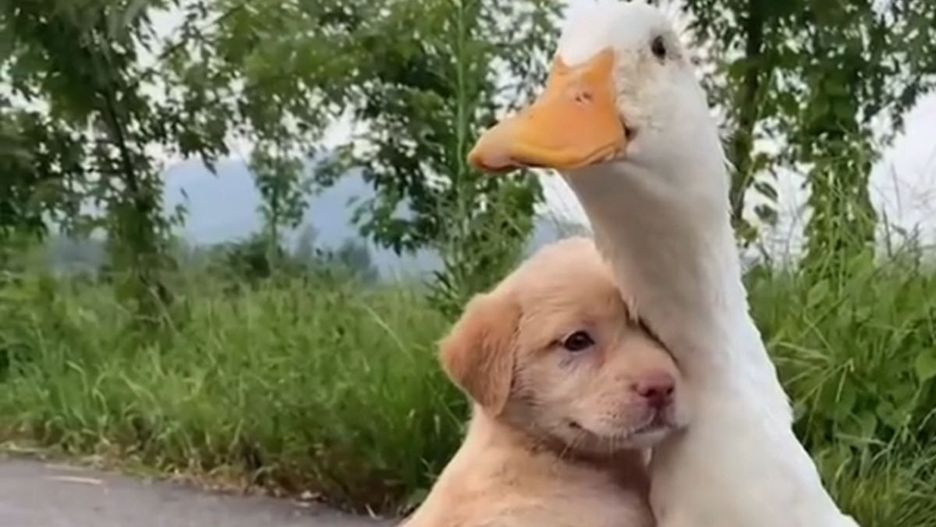 W rolach głównych występują szczeniak i gęś. Zwierzaki przypadły sobie do gustu. Piesek najpierw przytula się do swojego ptasiego przyjaciela, a potem... To musisz zobaczyć na własne oczy.
