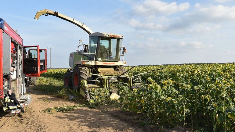 W Polnicy nieopodal Człuchowa służby dostały wezwanie do wypadku, jaki wydarzył się na polu słoneczników. 43-letni operator kombajnu tnącego stał się ofiarą własnej lekkomyślności.