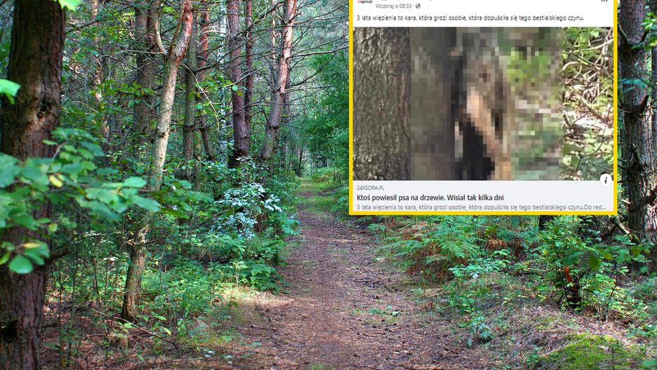 Spacerowicze przechadzający się po lesie pod Lwówkiem Śląskim (woj. dolnośląskie) dokonali wstrząsającego odkrycia. Na jednym z drzew wisiały zwłoki psa. Prawdopodobnie były tam co najmniej od kilku dni. Policja szuka sprawcy potwornego czynu.