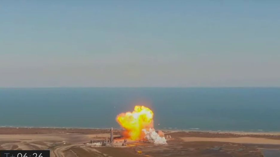 Rakieta runęła na ziemię. Maszyna roztrzaskała się tuż obok Starshipa SN10. Wszystkiemu towarzyszyła ogromna kula ognia i niemały huk.
