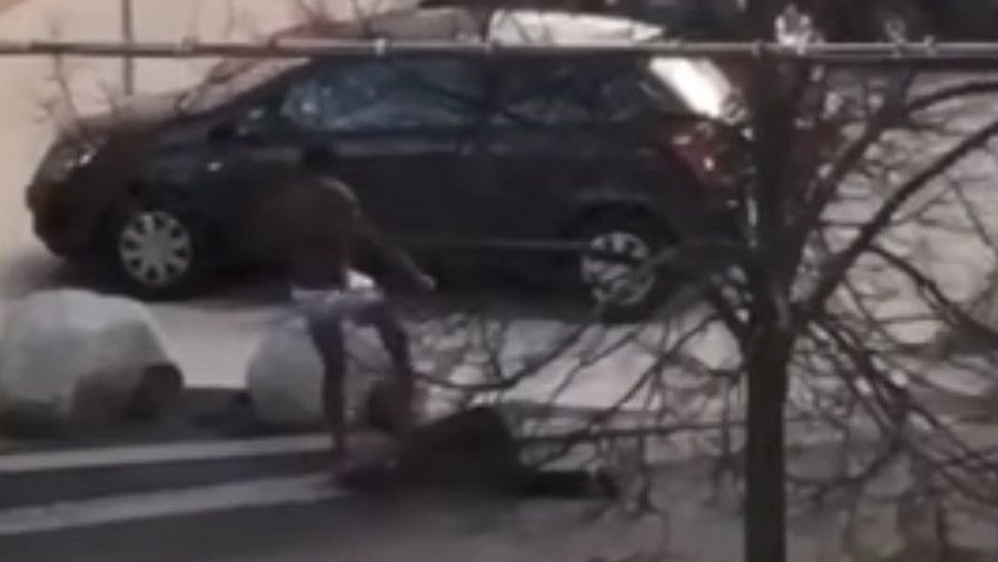 Zaatakował znienacka. Półnagi mężczyzna afrykańskiego pochodzenia podszedł do staruszki i silnie ją uderzył. Cios miał nokautująca siłę. Staruszka upadła, a gdy już leżała została kilkakrotnie kopnięta w głowę. Całe zdarzenie świadkowie nagrali na telefon i wrzucili do internetu. Kobiecie nikt jednak nie pomógł.