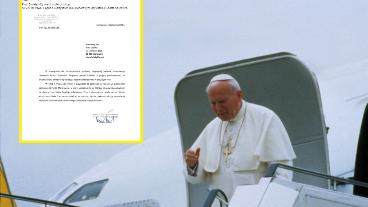 Pełnomocnik prezydenta zauważył ponadto, że na przyszły roku przypada 25-lecie wizyty Jana Pawła II w Sosnowcu. "Rocznica ta będzie znakomitą okazją do nadania Papieżowi Polakowi tytułu Honorowego Obywatela Miasta Sosnowca" - czytamy w piśmie.