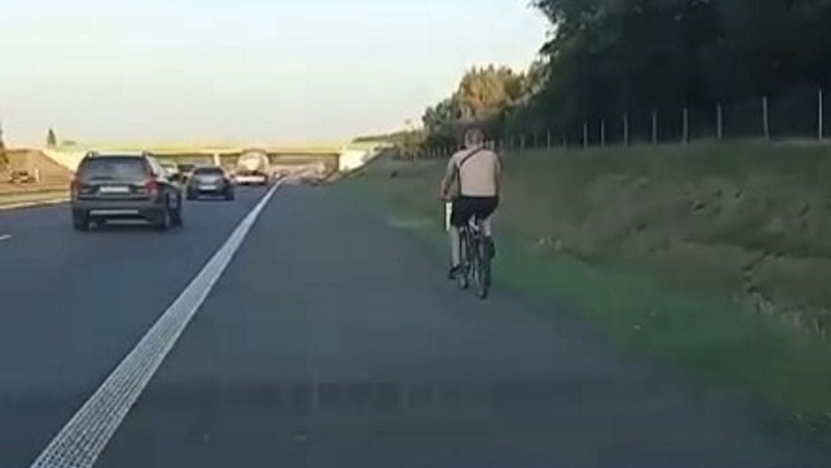Jechał rowerem autostradą. Policja pokazała wideo