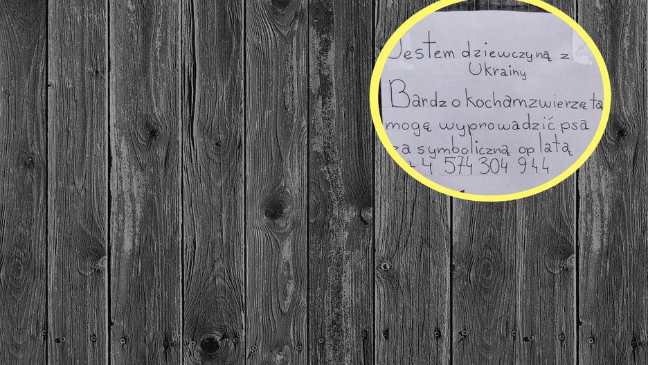 Jestem dziewczyną z Ukrainy. Bardzo kocham zwierzęta. Mogę wyprowadzić psa za symboliczną opłatą - brzmi treść napisanej odręcznie na kartce wiadomości.
