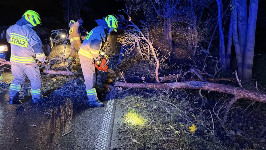 W miejscowości Lubin silny wiatr przewrócił drzewo na drogę, co spowodowało poważne zdarzenie z udziałem kilku pojazdów. W jego wyniku ranne zostały cztery osoby.