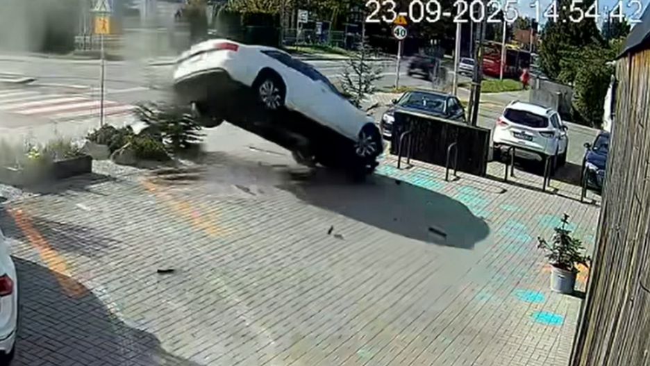 W mediach społecznościowych szybko rozprzestrzeniło się nagranie ze zdarzenia drogowego, do którego doszło na osiedlu Wojnów we Wrocławiu. Na filmie widać, jak samochód dosłownie przelatuje w powietrzu, uderzając w zaparkowany pojazd, a następnie ląduje na ziemi, trafiając w słup energetyczny.