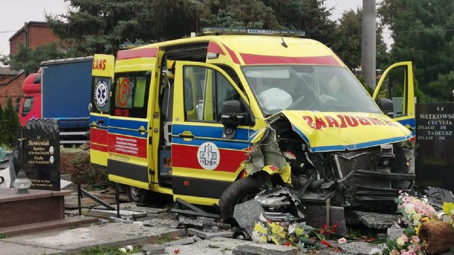 Policja ustala okoliczności wypadku w Bielsku (woj. mazowieckie), gdzie karetka przebiła ogrodzenie i wjechała na cmentarz, niszcząc kilka nagrobków. W wyniku wypadku nikt nie ucierpiał. Kierowca był trzeźwy.