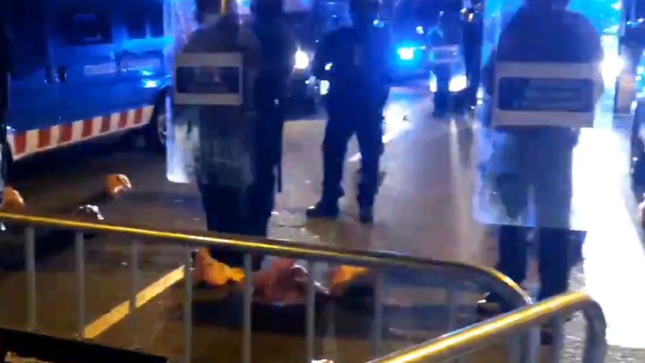 Policjanci zorganizowali tam barykadę. Funkcjonariusze zostali obrzuceni przez demonstrantów świńskimi głowami. Podpalono również kosze na śmieci.
