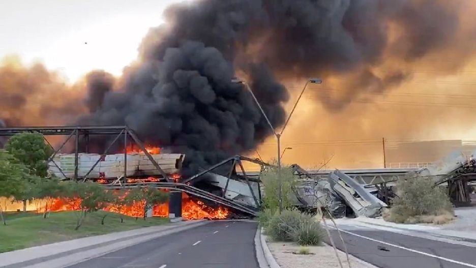 Most kolejowy w Tempe zawalił się po tym, jak jadący nim transport stanął w ogniu. W niektórych wagonach znajdowało się drewno, a inne były cysternami. Przerażeni świadkowie mówią o "scenach jak z piekła".