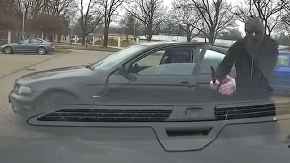 Po starciu autor nagrania kontynuował jazdę, szukając miejsca do zaparkowania. Nagle zza innych samochodów wyłoniło się widziane wcześniej bmw. Jego kierowca wyszedł nagle zamaskowany z pojazdu, trzymając w ręku pałkę. Przerażony kierujący wraz z pasażerem niezwłocznie uciekli z miejsca incydentu.