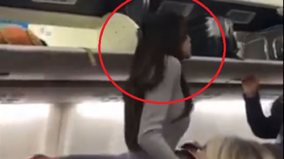Inny pasażer spoza kamery mówi jej, żeby się "zamknęła", co spowodowało u niej ogromny wybuch gniewu. Gdy zobaczyła, że ktoś inny z samolotu ją filmuje, wtedy nie wytrzymała i skierowała się do niego.