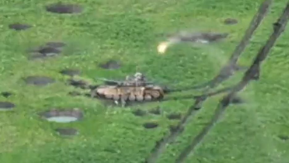 Maszyna (T-80 albo starsza wersja T-90) została trafiona przez pocisk z wyrzutni przenośnej czy systemu przeciwpancernego, który wykorzystali żołnierze ZSU. Co do tego pewności nie ma, wiadomo natomiast, że został skutecznie unieszkodliwiony i do walki nie wróci. Raczej na złom, jak 4400 innych maszyn, które straciła Rosja.