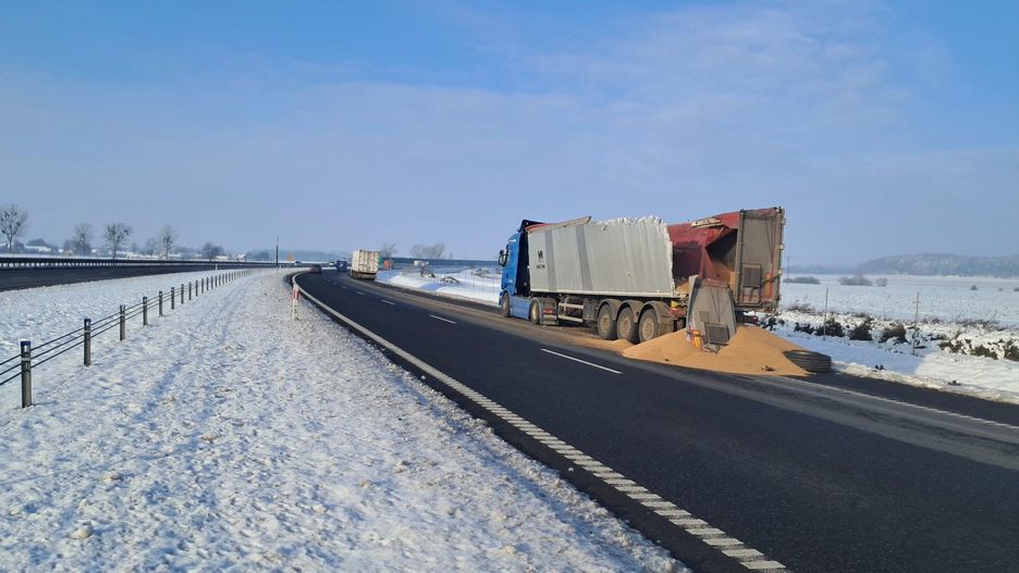 Na trasie S7 doszło do zderzenia dwóch ciężarówek, co spowodowało rozsypanie 8 ton zboża. Przez to na odcinku Olsztynek–Mława utworzyły się poważne utrudnienia.