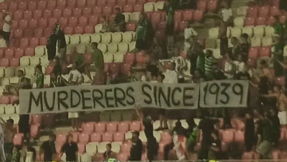 - Kibice Maccabi Hajfa wywiesili transparent z napisem „Mordercy od 1939 roku”.