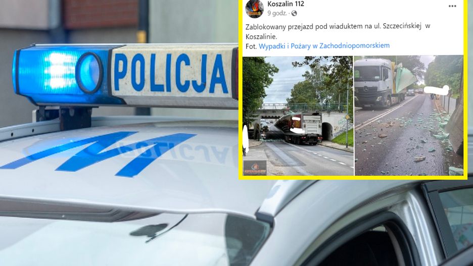 Koszalin: ciężarówka utknęła pod wiaduktem. Kolejny kierowca myślał, że się ''wciśnie''