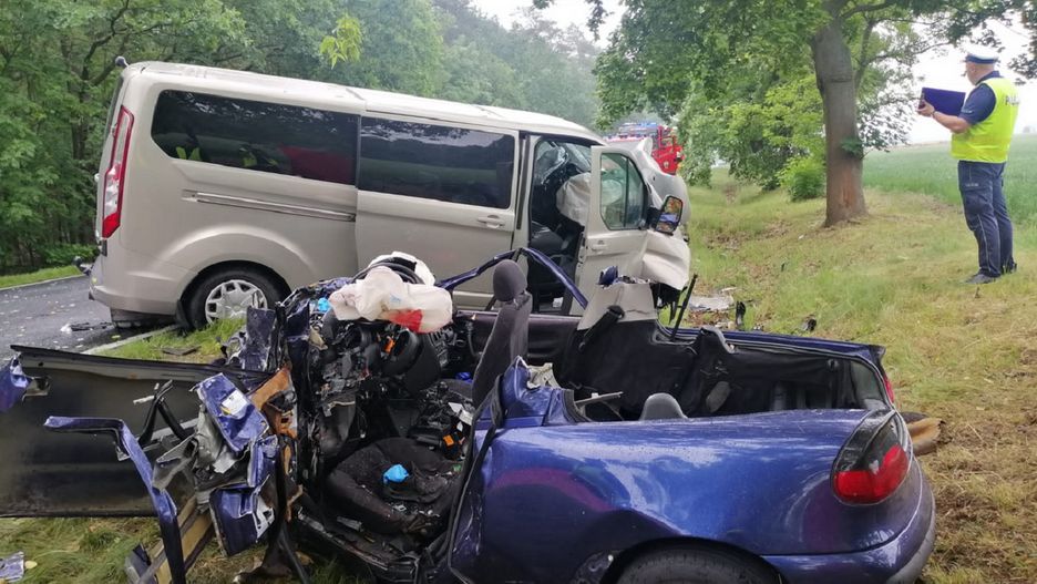 Koszmarny wypadek koło Śremu. Tyle zostało w opla tigry