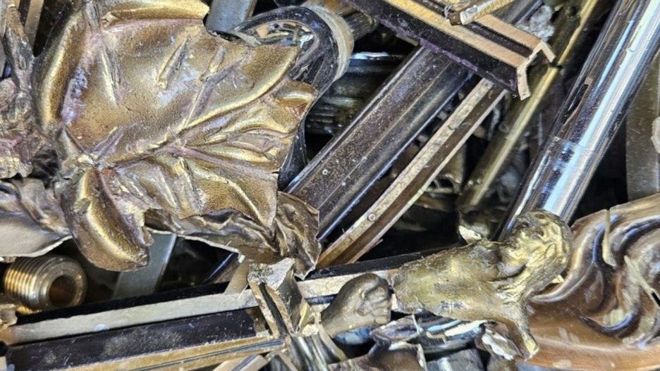Przeszukania ich mieszkań ujawniły torbę z częściowo zniszczonymi mosiężnymi krzyżami i figurkami o łącznej wadze 6 kg. Co więcej, w jednym ze skupów złomu, odnaleziono resztę skradzionego mienia.