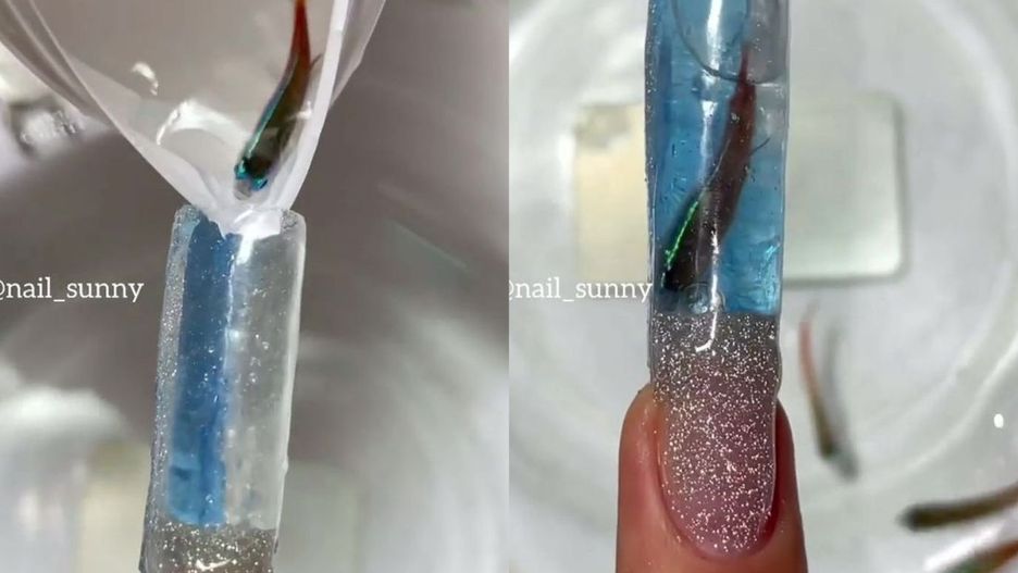 Jednak jeden manicure zwrócił uwagę internautów bardziej, niż wszystkie inne. Mowa o "żywym akwarium" na płytce paznokcia. Nietrudno się domyślić, że miejsca na paznokciu dla ryby jest mało. Niestety ktoś wykonał z akrylu mini pojemnik z odrobiną wody, który przyczepiono do paznokcia. I tam właśnie wrzucono malutką rybkę.