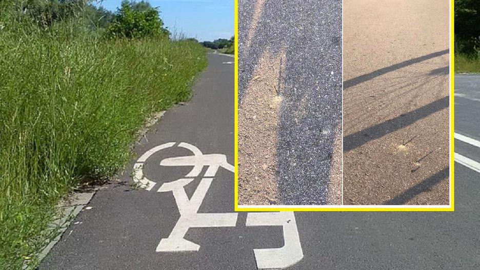 Na Facebooku jeden z użytkowników zamieścił zdjęcia ze ścieżki rowerowej, z której wystają kilkucentymetrowe gwoździe.