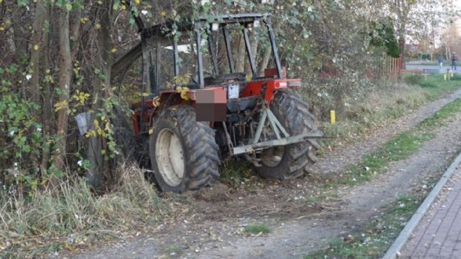 Gdy na miejsce przyjechali policjanci, ciągnik nadal był uruchomiony. W kabinie siedział 24-latek, który pił piwo. Mężczyzna został zatrzymany.