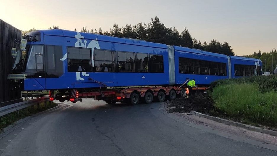Pojazd ciężarowy, który przewozi tramwaj ma łącznie 70 ton i ponad 33 metry długości. Tak wielkie auto z bardzo ciężkim ładunkiem już dwa razy zablokowało przejazd na drodze ekspresowej.