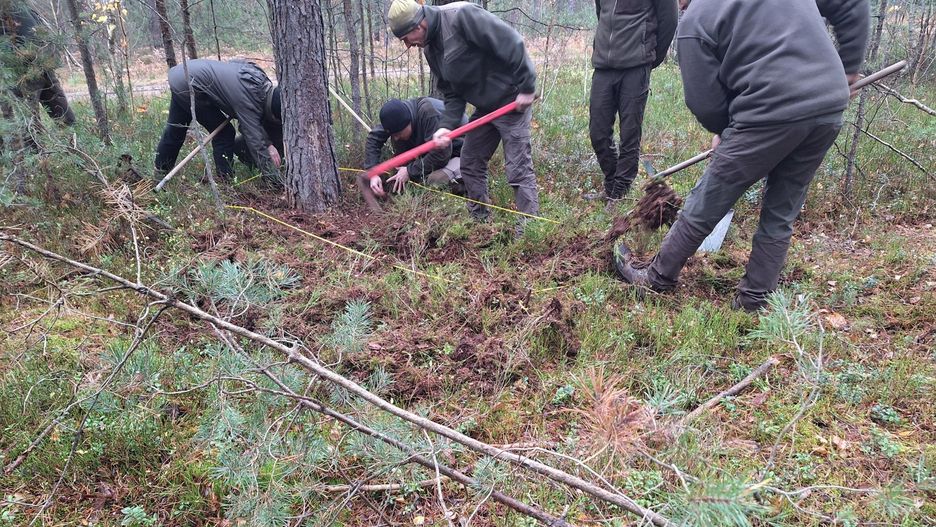 Jak wyglądają poszukiwania? Zespół leśników przeszukuje ściółkę aż do gleby mineralnej, korzystając z różnych metod inwentaryzacyjnych. Pracują w kilkuosobowych grupach, aby dokładnie sprawdzić teren wokół drzew.