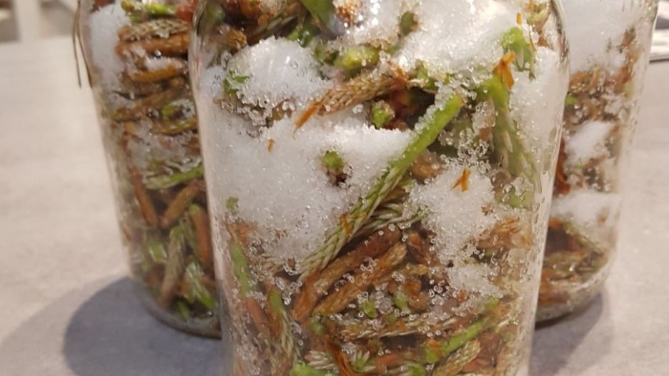 Zasypuj pędy sosny cukrem - najlepiej warstwowo, w proporcjach 1:1 lub z lekką przewagą cukru nad pędami. Słoik zakręć, ale nie do końca lub przykryj gazą i ustaw na nasłonecznionym parapecie - czytamy w poście leśników na Facebooku.