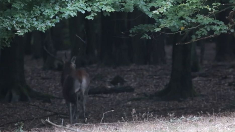 Leśniczy z Nadleśnictwa Bolewice o zmierzchu natknął się na imponujący widok w lesie. Natychmiast chwycił za telefon. "Bliskie spotkanie o zmierzchu" - opisał nagranie.