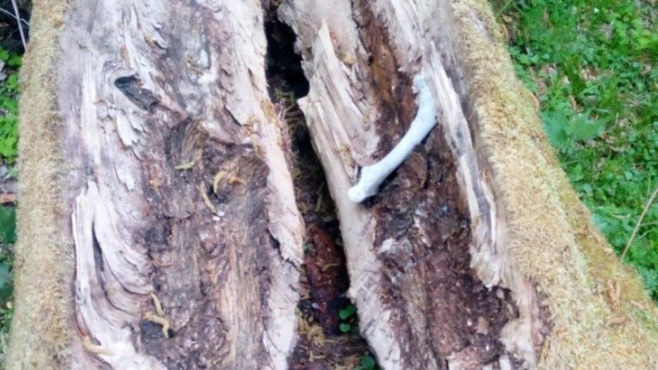 Co to takiego? Jak wyjaśnili we wpisie leśnicy, to... kość. Najprawdopodobniej należąca do jakiegoś leśnego zwierzęcia. Zapewne znajduje się tam od dłuższego czasu, gdyż zdążyła zrosnąć się z pniem. Nie wiadomo jednak, jak mogła się tam znaleźć.