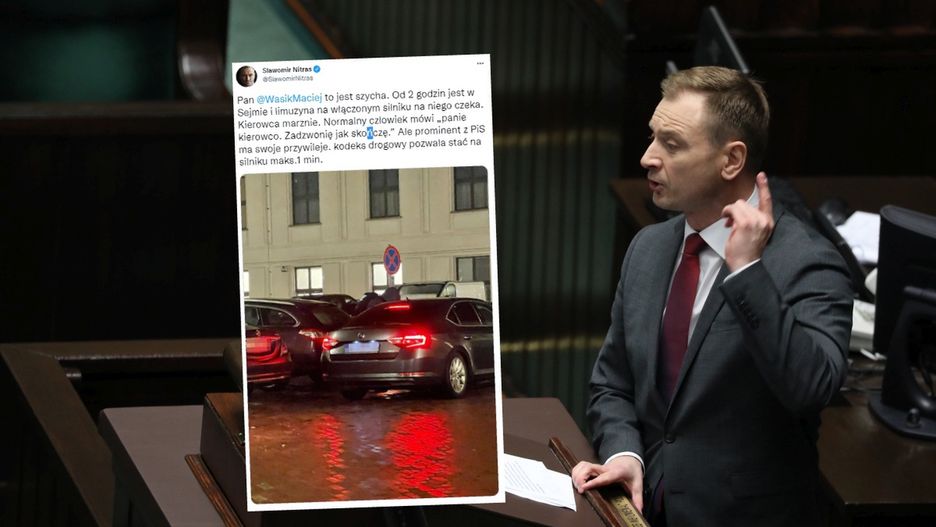 O co poszło? O samochód. Nitras opublikował zdjęcie auta zaparkowanego przed Sejmem i stwierdził, że Maciej Wąsik "to jest szycha". Według relacji Nitrasa limuzyna czekała na Wąsika przez kilka godzin - i nie byłoby problemu, gdyby nie to, że przez cały ten czas w pojeździe był włączony silnik.