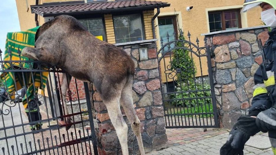 Łoś zawisł na płocie w centrum miasta. Zwierzę nie przeżyło