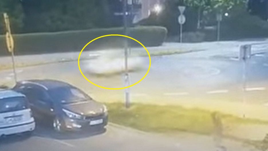 Nagranie z monitoringu opublikowała w sieci policja. Kamery nagrały niecodzienną sytuację na ulicy księdza Jana Gałeczki w Chorzowie. Około godziny 20:47 rozpędzony matiz przeleciał nad rondem.