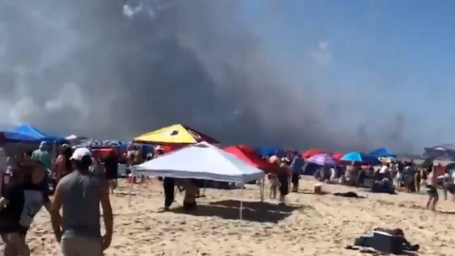 Po chwili na niebie pojawił się wielki słup czarnego dymu, z którego co jakiś czas wyłaniały się kolorowe rozbłyski. Przerażeni plażowicze uciekali jak najdalej od źródła wybuchu.