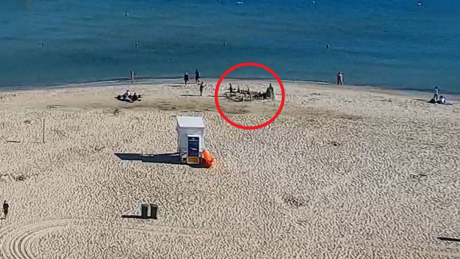 Było jasne, że na plaży stało się coś niezwykłego. W poniedziałek rano zauważyliśmy za pośrednictwem kamerki internetowej sporą konstrukcję z piasku, przy której cały czas zatrzymują się ludzie. Robili zdjęcia, nagrywali filmy i oglądali budowlę z różnych stron.