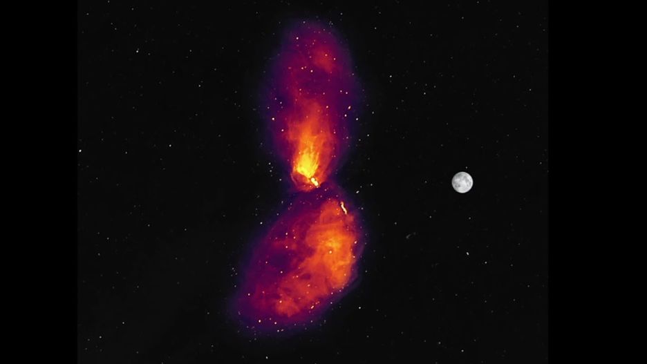Zdjęcia wykonano przy pomocy teleskopu Murchison Widefield Array (MWA). Na fotografii widać, że wokół supermasywnej czarnej dziury znajdują się obłoki zimnego gazu. Naukowcy są zdania, że czarny dziury mogą się nim "żywić". Dzięki temu były w stanie urosnąć do tak dużych rozmiarów, co z kolei umożliwiło formowanie się wokół nich galaktyk.