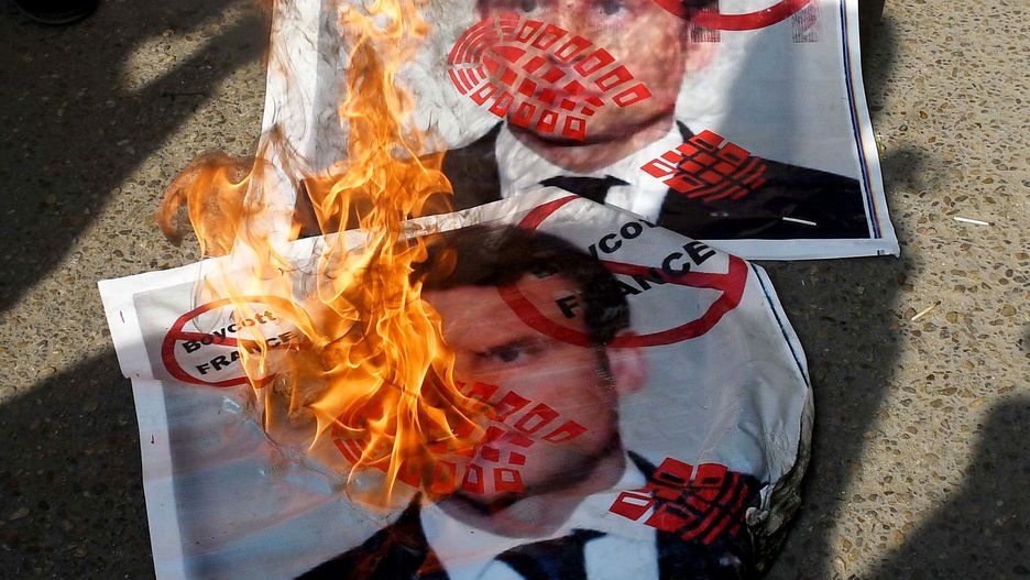 Składając hołd nauczycielowi, któremu ścięto głowę za karykaturę, Macron bronił francuskiej świeckości i długiej tradycji satyry. Jego poglądy zostały zakwestionowane nie tylko podczas gniewnych protestów w krajach islamskich - z których wiele wzywało do bojkotu produktów francuskich - ale także przez anglojęzyczne gazety, a nawet międzynarodowych sojuszników politycznych.