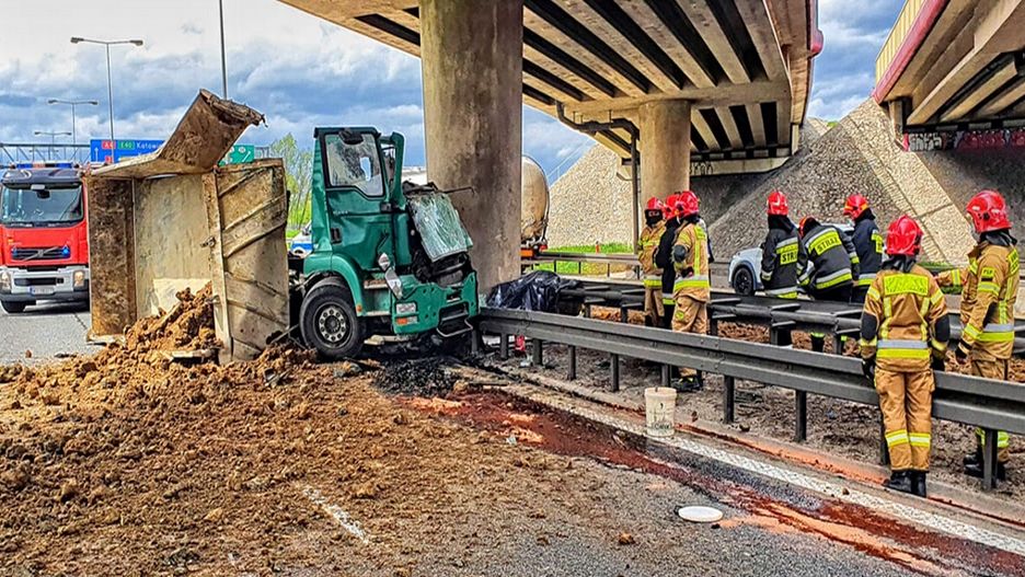 Tir przewoził ziemię, która rozsypała się po całej autostradzie. W związku z tym pojawiły się utrudnienia w ruchu - zablokowano dwa psy w obu kierunkach. Ruch odbywa się pasami zjazdowymi.