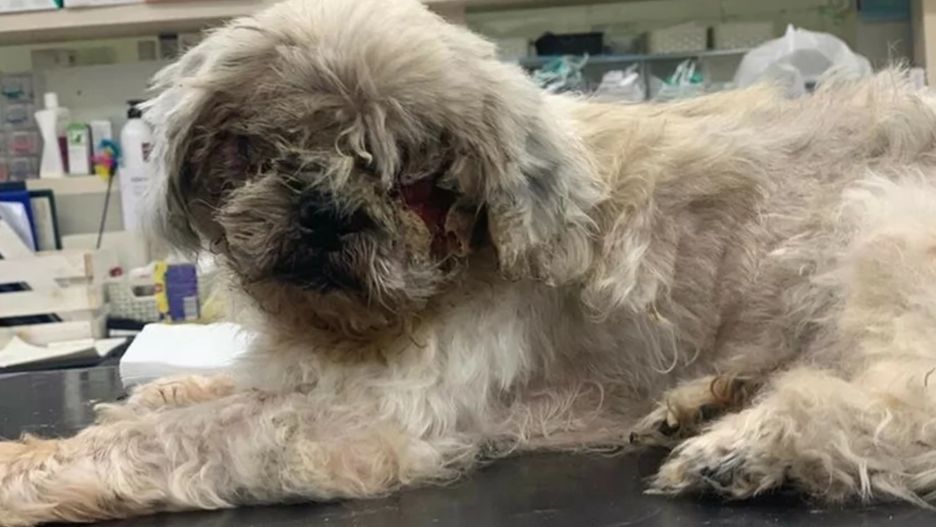 Pies został zabrany do kliniki weterynaryjnej. Uszkodzenia gałek ocznych zwierzęcia były jednak zbyt duże, by można było mu pomóc. Shih tzu był także niedożywiony i bardzo wychudzony. Miał zrośnięte uszy, a badania wykazały szmery w sercu.
