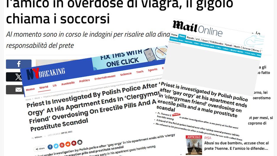 Leggo pisze o "gejowskiej orgii zakończonej skandalem i przedawkowaniu środków na potencję przez duchownych". Według dziennikarzy włoskiego tytułu ofiarą seksualnej imprezy był "żigolak, który wymagał medycznej pomocy".